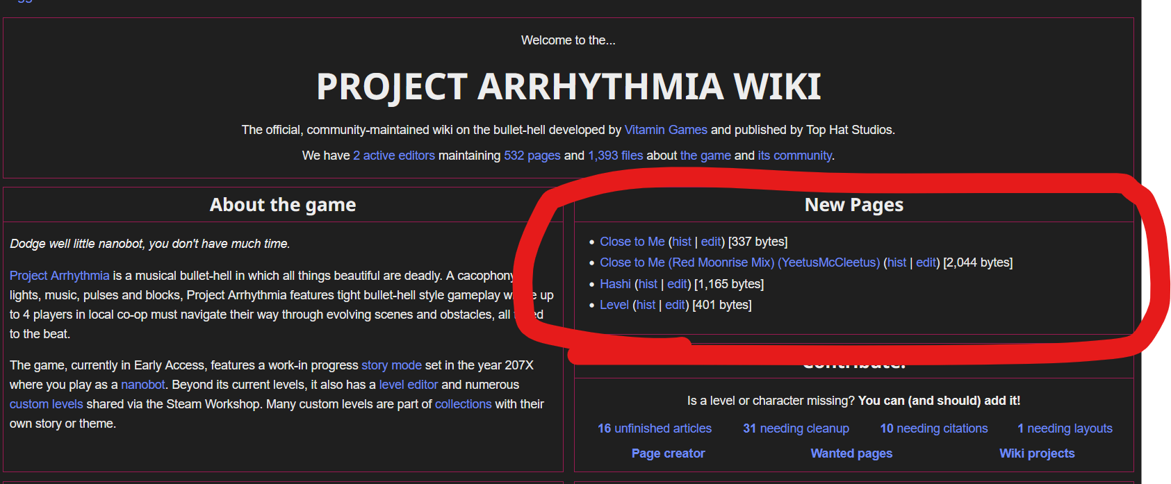 We’ve reached 600 pages on the Project Arrhythmia Wiki! Thank you all for your contributions and support <3 so glad to help run a library of information on one of the most creative communities of all time.